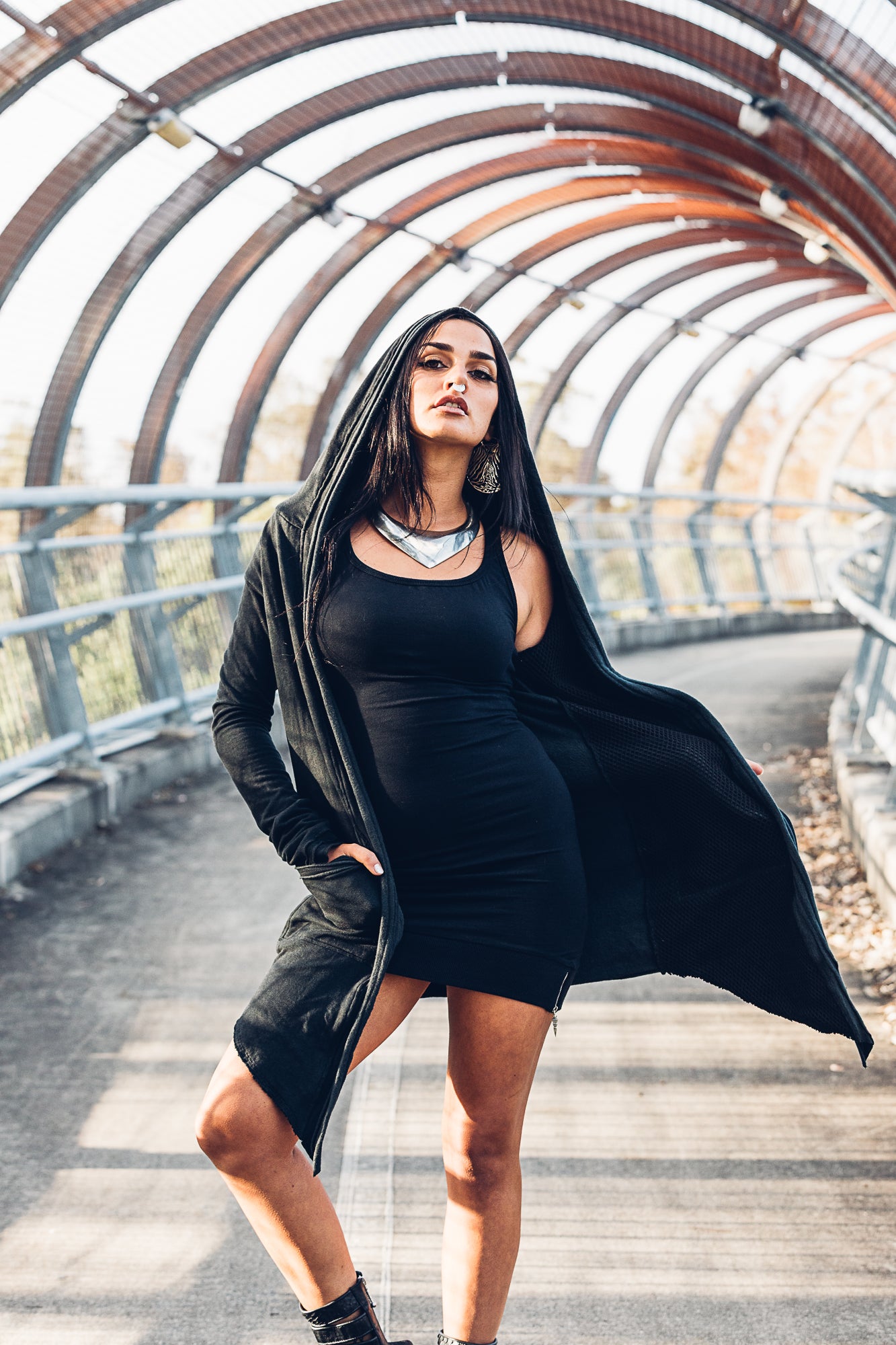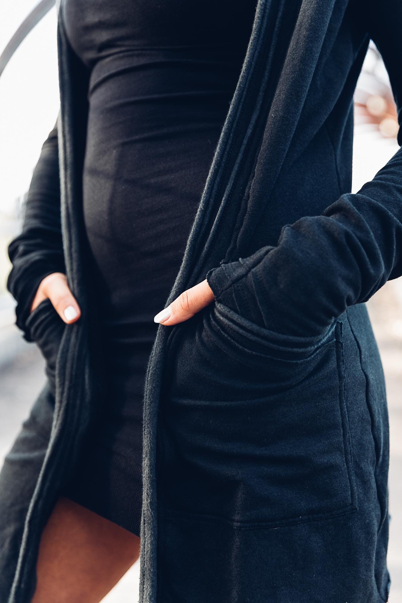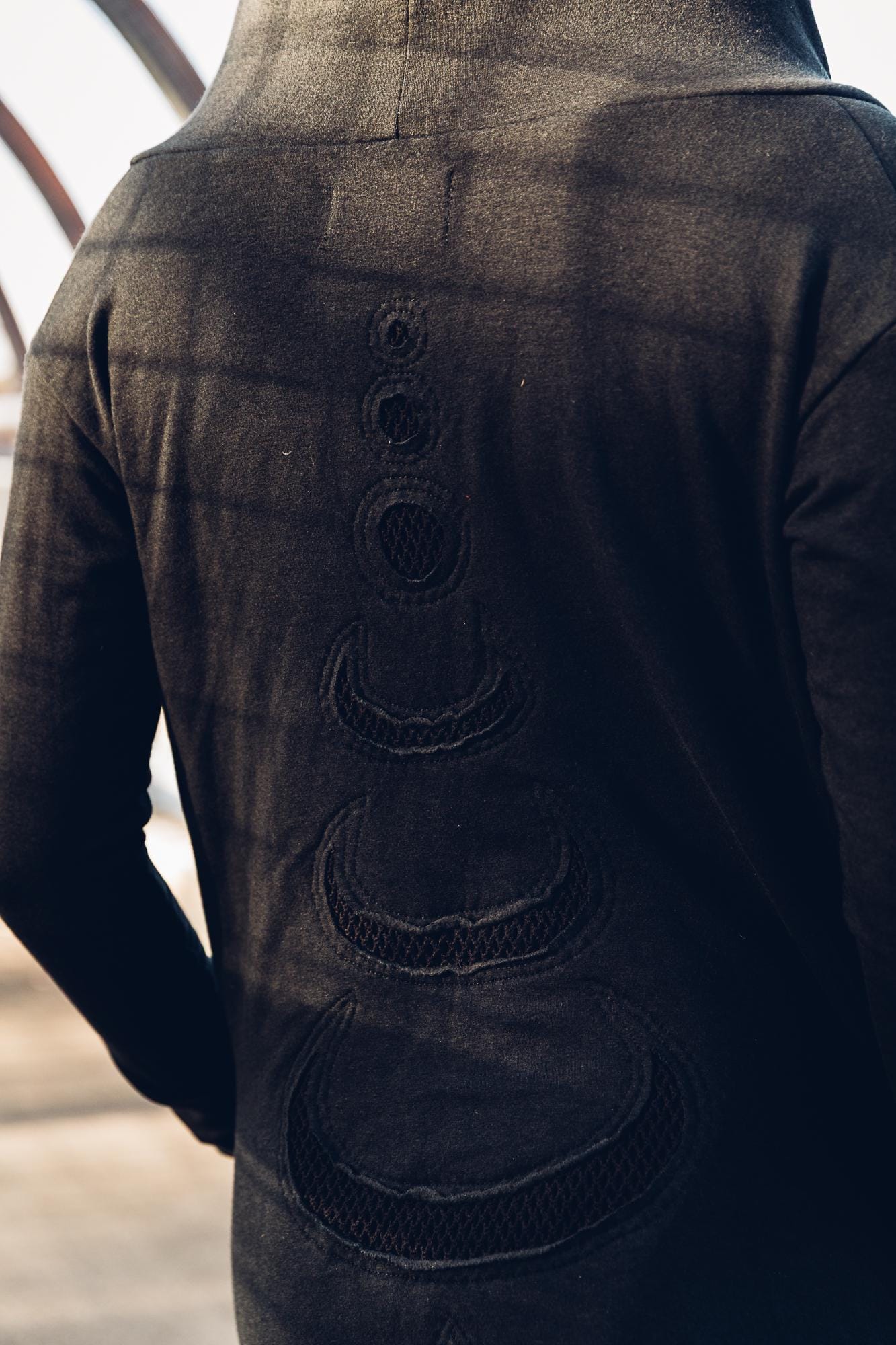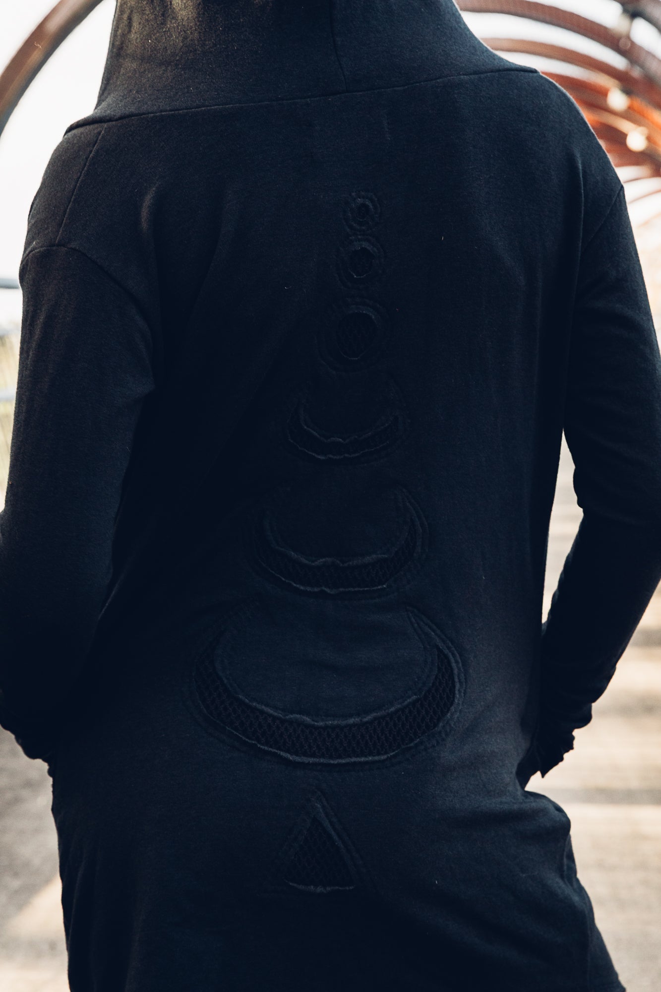 Dreamy, soft ,thick and plush this organic bamboo fleece is absoutely divine, a perfect mix of dressy casual, with that usual dark serpentine flair with our dearest moony in a triple flow on the back. This open jacket ( no zip) features thick cotton mesh lining on the front lapels and inside the hood, there are frayed features on the front and hood. It also has large , deep pockets for optimal comfort and practicality.