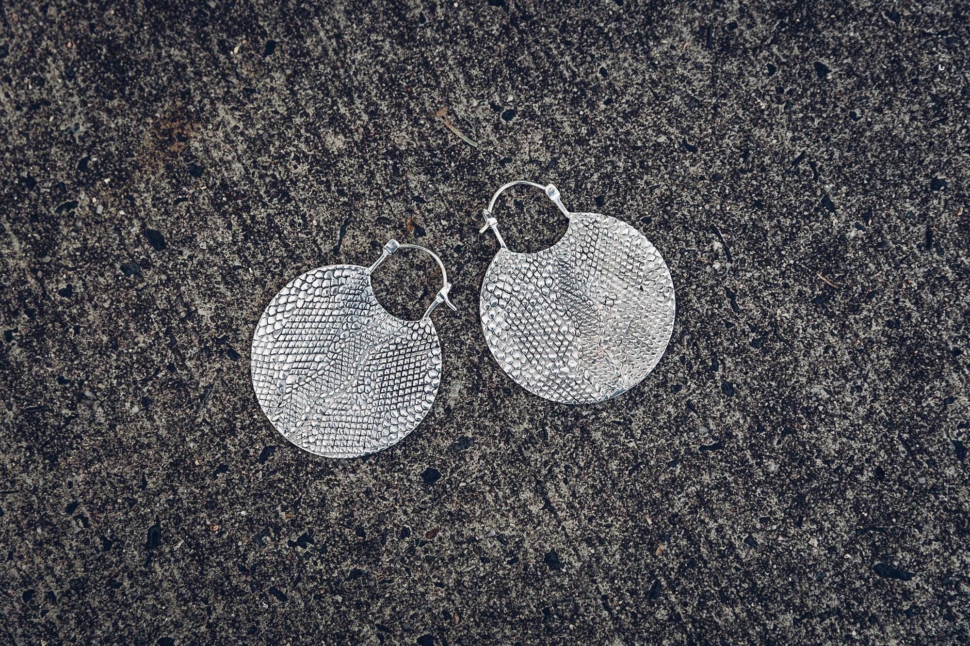 Serpentina hoops [ Silver Plated Hoops [ Snake print hoop- Big hoop- Snake hoop - Hoop Earrings
