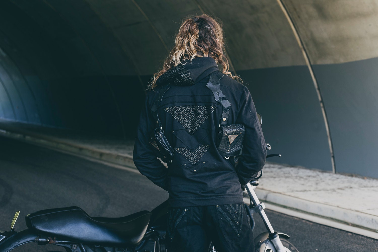A new variation on a Serpentine classic design. Soft cotton, custom diamond gold print, brass buttons, detachable large hood and detachable gas/dust mask which doubles as a scarf. Perfect everyday or festival hoody..