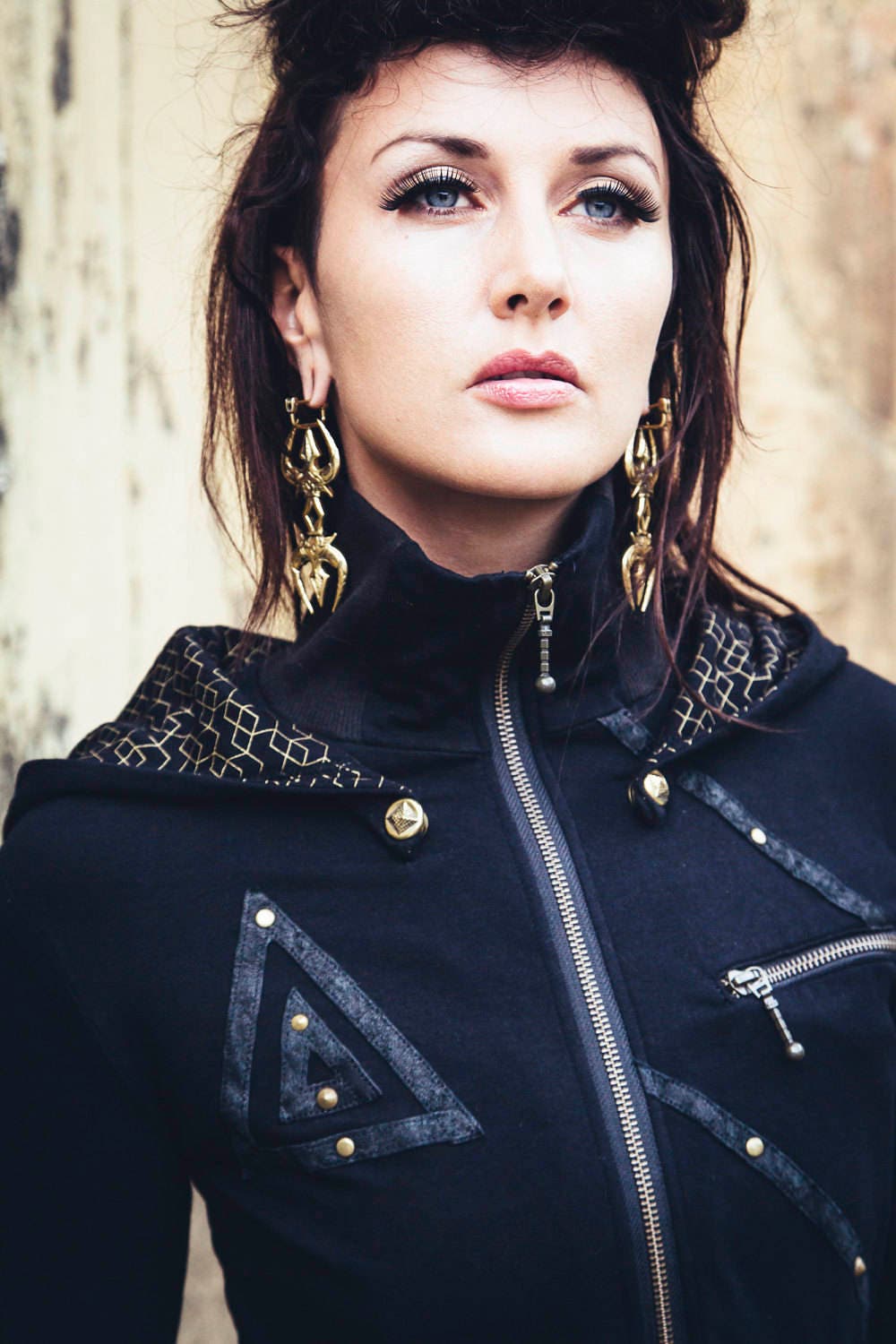 My newest hoody a long version of the Pyramid Priestess crop hoody. Super soft, warm stretchy terry embossed with soft leather accents, custom gold diamond print and custom gold diamond buttons. Features long sleeves with thumb holes, pockets, high neck and detachable hood. So comfy, warm and luxe you will live in it! Wear as a jacket or hoody. Only available in black because what else do you need? ;)