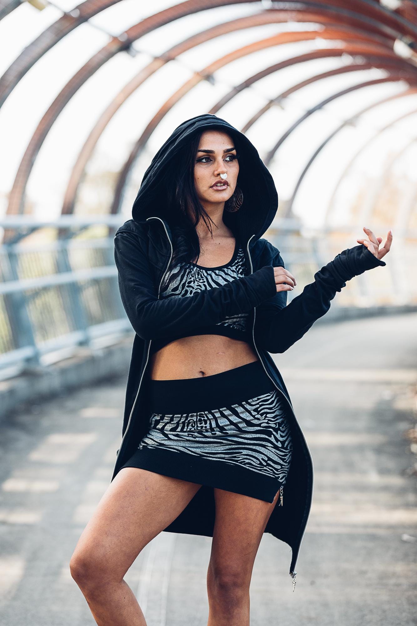 Perfect sexy and playful mini skirt made from stretchy organic cotton and cotton ribbing with added zip detailing, zkk silver zips with our new custom temple hangers for added flair.